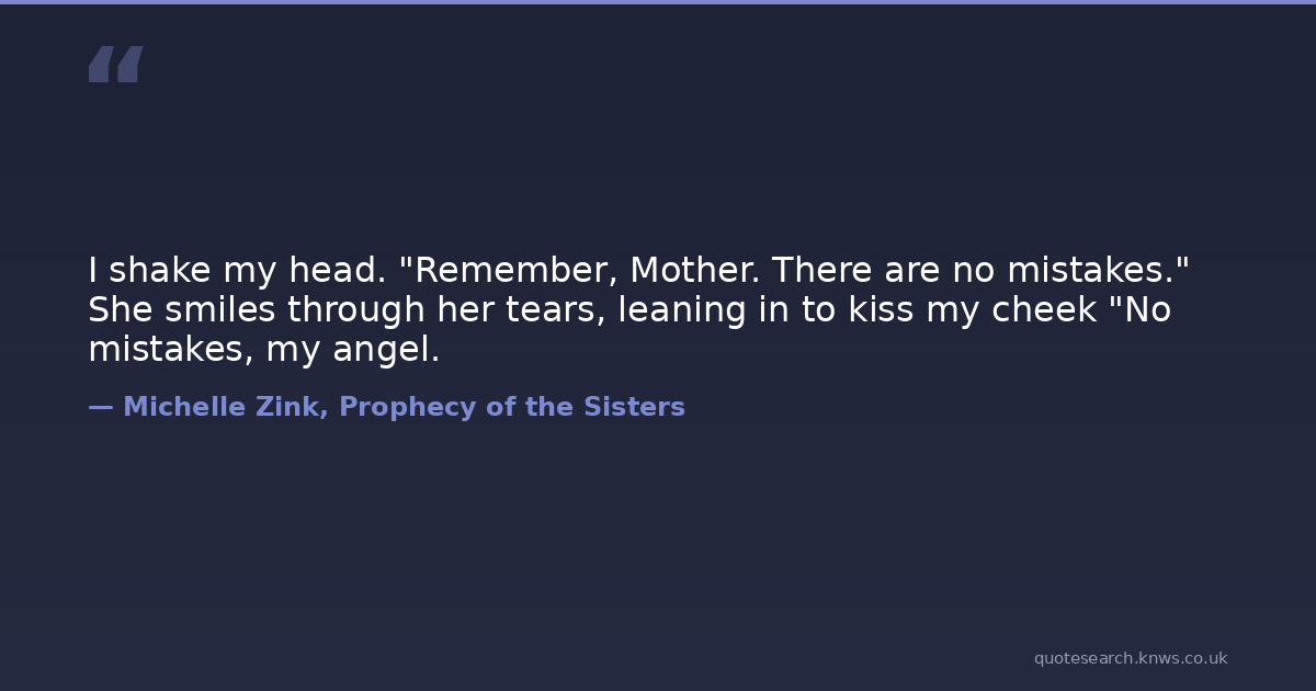 I shake my head. "Remember, Mother. There are no mistakes." She smiles through her tears, leaning in to kiss my cheek "No mistakes, my angel.