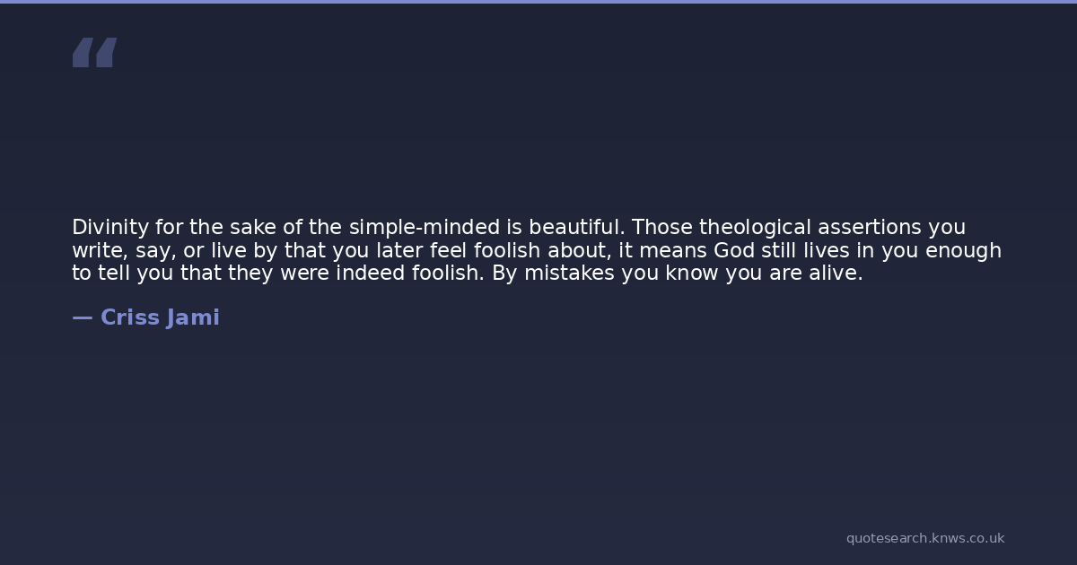 Divinity for the sake of the simple-minded is beautiful. Those theological assertions you write, say, or live by that you later feel foolish about, it means God still lives in you enough to tell you that they were indeed foolish. By mistakes you know you are alive.