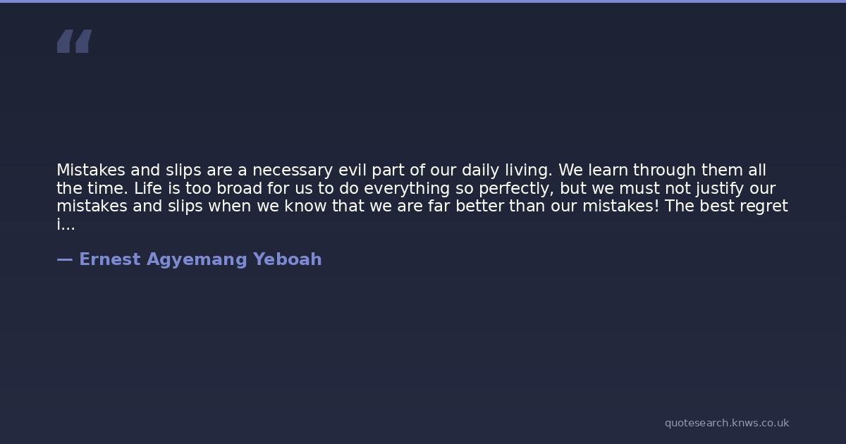 Mistakes and slips are a necessary evil part of our daily living. We learn through them all the time. Life is too broad for us to do everything so perfectly, but we must not justify our mistakes and slips when we know that we are far better than our mistakes! The best regret is to take a robust action in the right direction to prove how far better we are than our mistakes and slips.