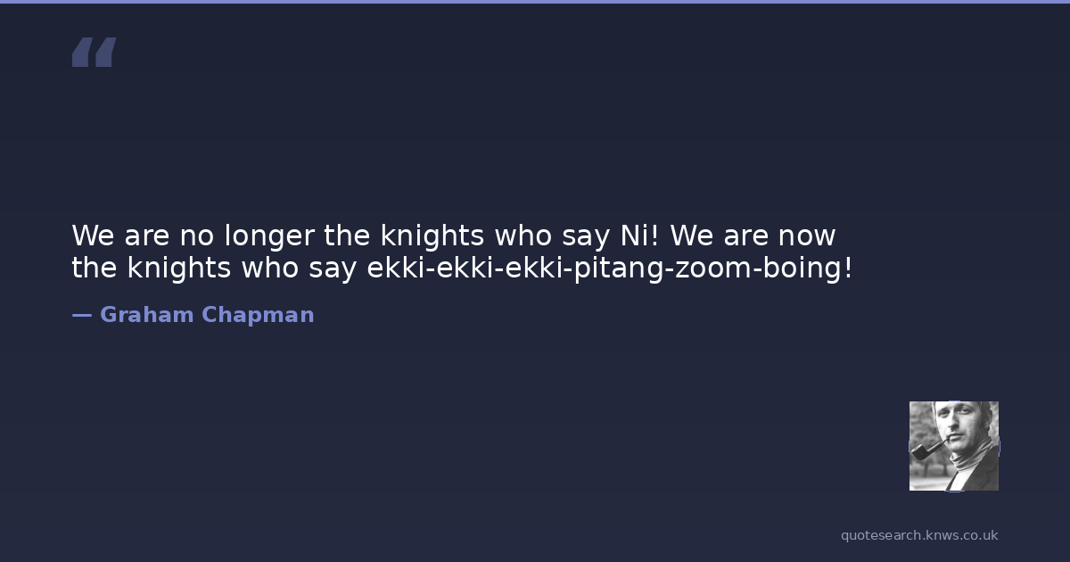 We are no longer the knights who say Ni! We are now the knights who say ekki-ekki-ekki-pitang-zoom-boing!