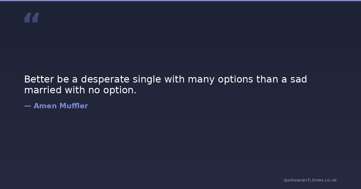 Better be a desperate single with many options than a sad married with no option.