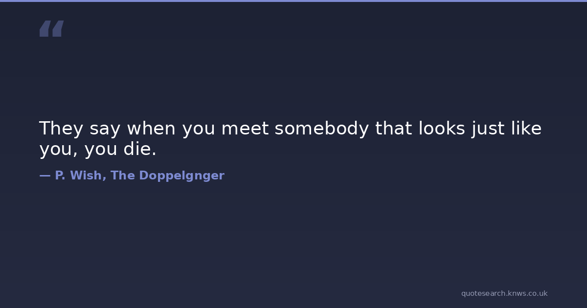 They say when you meet somebody that looks just like you, you die. death doppelganger horror lookalike urban-legends Download Image Share on X Share on Facebook Copy Link