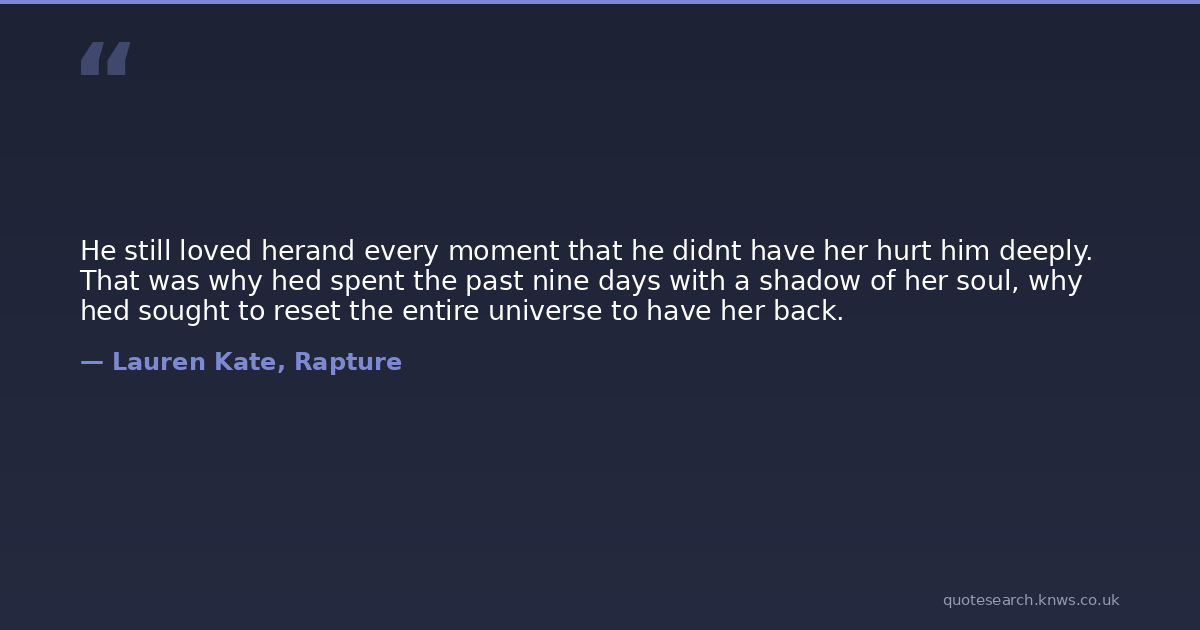 He still loved herand every moment that he didnt have her hurt him deeply. That was why hed spent the past nine days with a shadow of her soul, why hed sought to reset the entire universe to have her back.