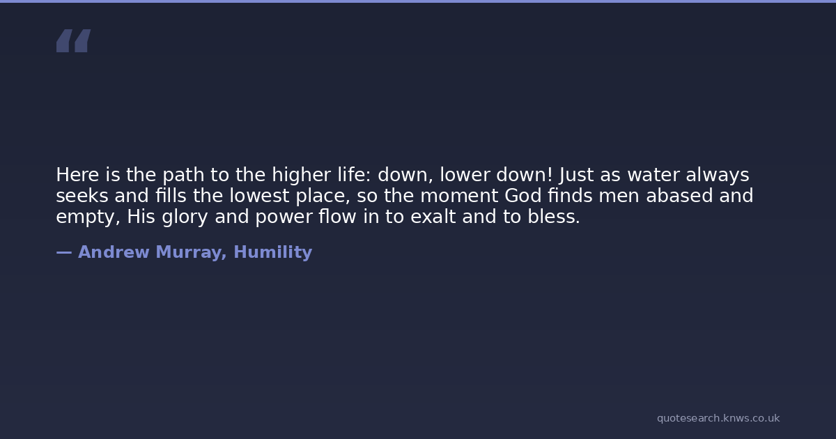 Here is the path to the higher life: down, lower down! Just as water always seeks and fills the lowest place, so the moment God finds men abased and empty, His glory and power flow in to exalt and to bless.