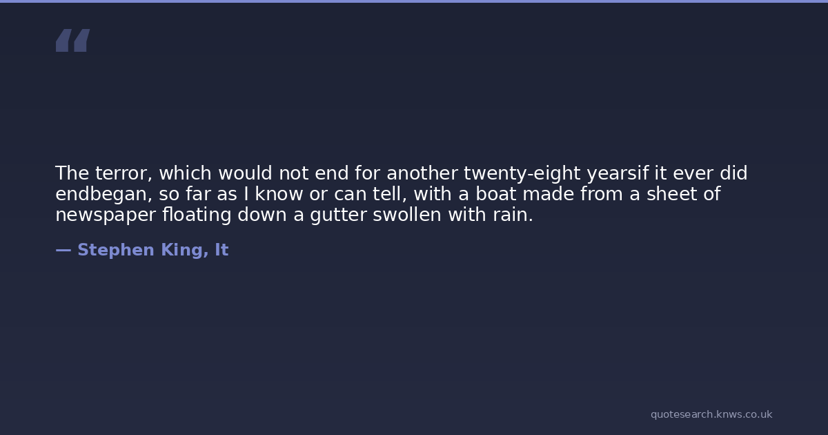 The terror, which would not end for another twenty-eight yearsif it ever did endbegan, so far as I know or can tell, with a boat made from a sheet of newspaper floating down a gutter swollen with rain.