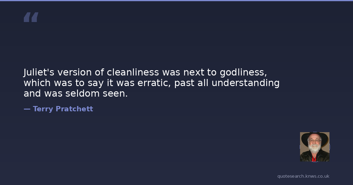 Juliet's version of cleanliness was next to godliness, which was to say it was erratic, past all understanding and was seldom seen.