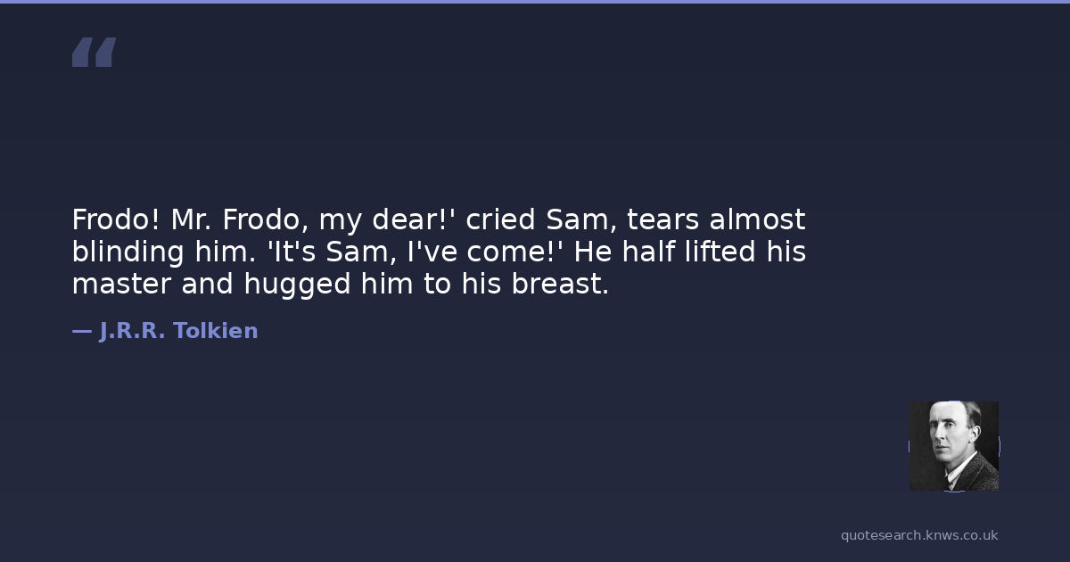 Frodo! Mr. Frodo, my dear!' cried Sam, tears almost blinding him. 'It's Sam, I've come!' He half lifted his master and hugged him to his breast.