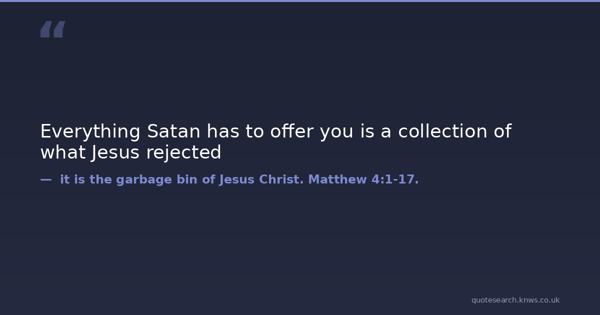 Everything Satan has to offer you is a collection of what Jesus rejected Felix Wantang God's Blueprint of the Holy Bible Download Image Share on X Share on Facebook Copy Link