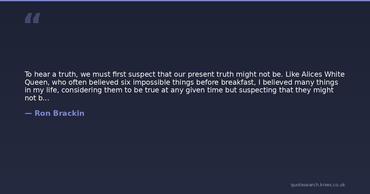 To hear a truth, we must first suspect that our present truth might not be. Like Alices White Queen, who often believed six impossible things before breakfast, I believed many things in my life, considering them to be true at any given time but suspecting that they might not be, until I met Jesus Christ. When we encounter The Truth, we know it and can only accept or reject it. Denial is not an option.