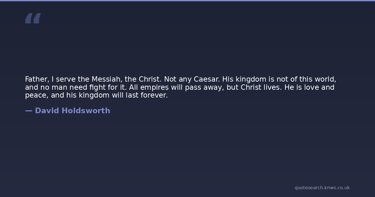 Father, I serve the Messiah, the Christ. Not any Caesar. His kingdom is not of this world, and no man need fight for it. All empires will pass away, but Christ lives. He is love and peace, and his kingdom will last forever.