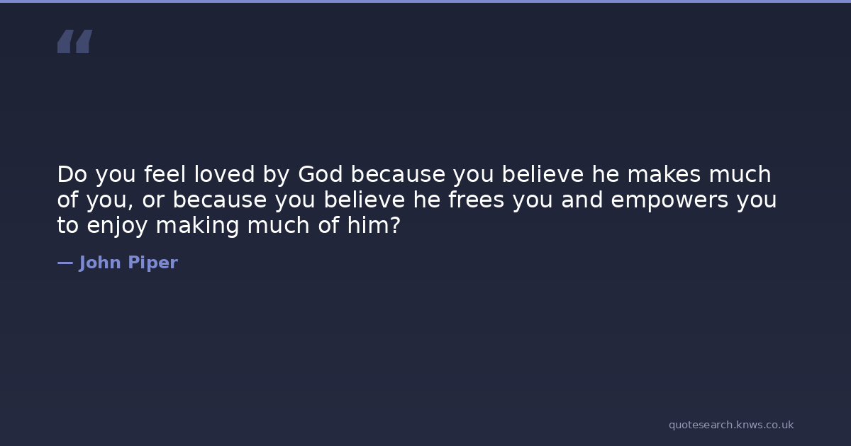 Do you feel loved by God because you believe he makes much of you, or because you believe he frees you and empowers you to enjoy making much of him?