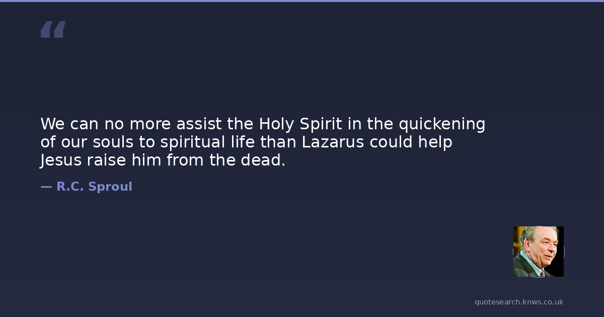 We can no more assist the Holy Spirit in the quickening of our souls to spiritual life than Lazarus could help Jesus raise him from the dead.