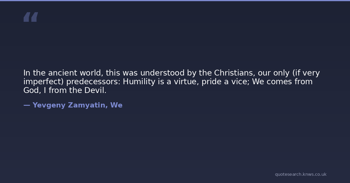 In the ancient world, this was understood by the Christians, our only (if very imperfect) predecessors: Humility is a virtue, pride a vice; We comes from God, I from the Devil.