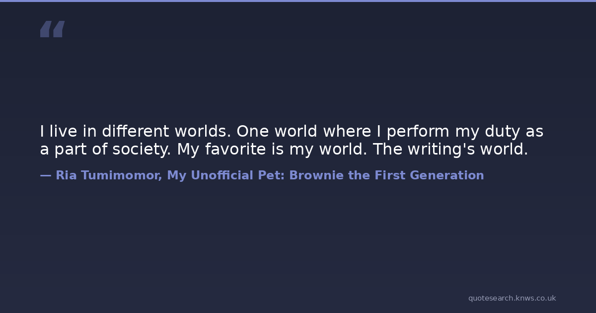 I live in different worlds. One world where I perform my duty as a part of society. My favorite is my world. The writing's world.