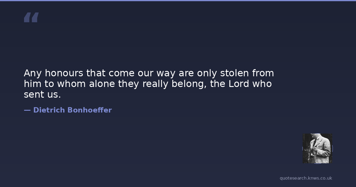 Any honours that come our way are only stolen from him to whom alone they really belong, the Lord who sent us.