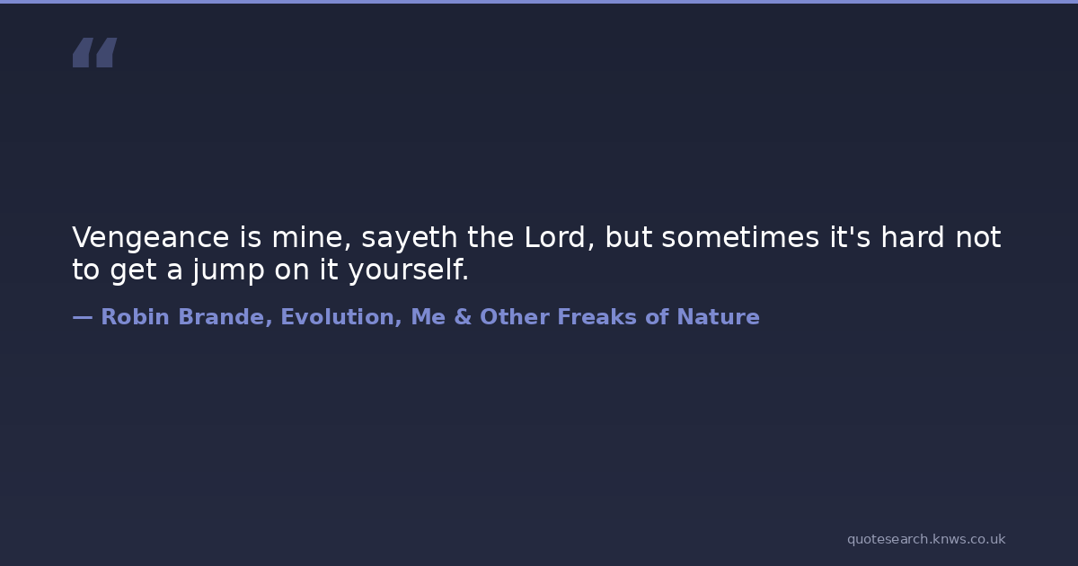Vengeance is mine, sayeth the Lord, but sometimes it's hard not to get a jump on it yourself. attitude Download Image Share on X Share on Facebook Copy Link