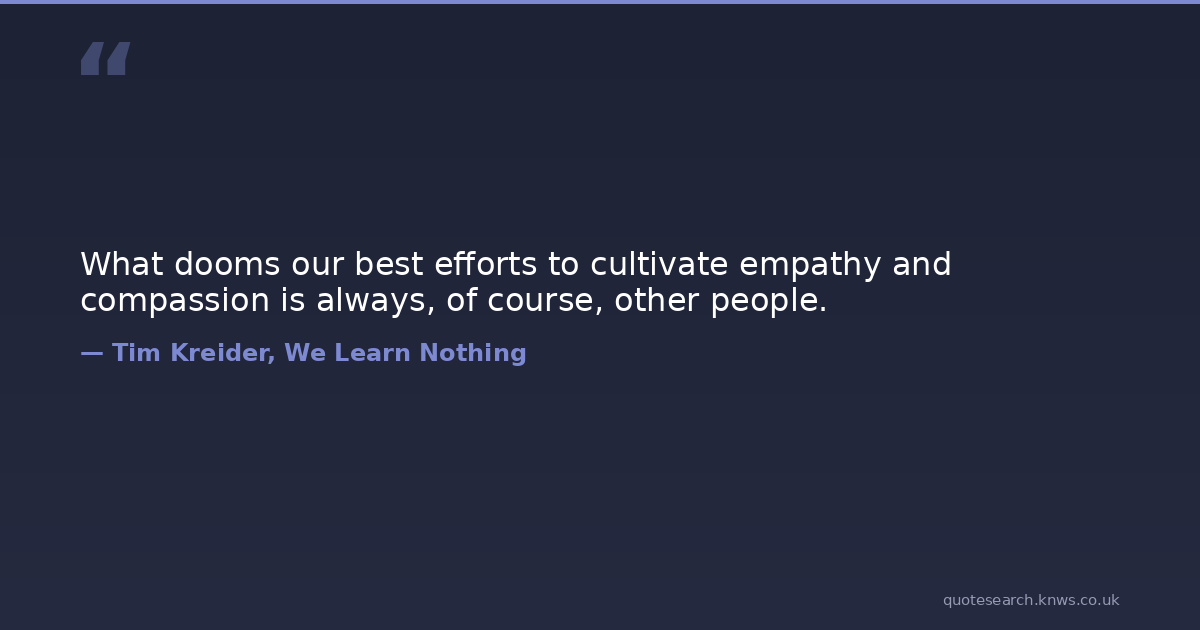 What dooms our best efforts to cultivate empathy and compassion is always, of course, other people.