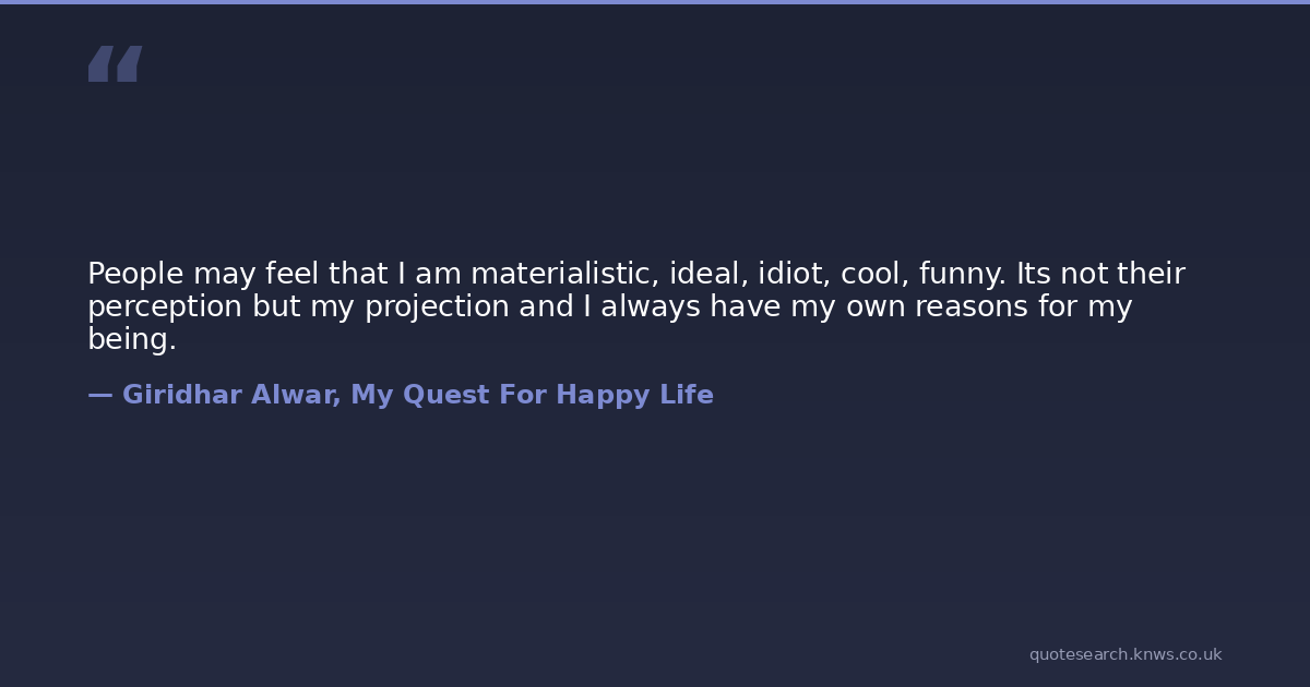 People may feel that I am materialistic, ideal, idiot, cool, funny. Its not their perception but my projection and I always have my own reasons for my being.