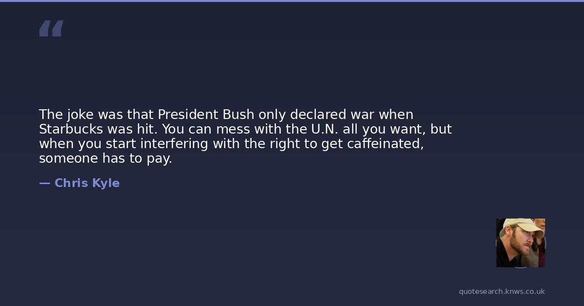 The joke was that President Bush only declared war when Starbucks was hit. You can mess with the U.N. all you want, but when you start interfering with the right to get caffeinated, someone has to pay.