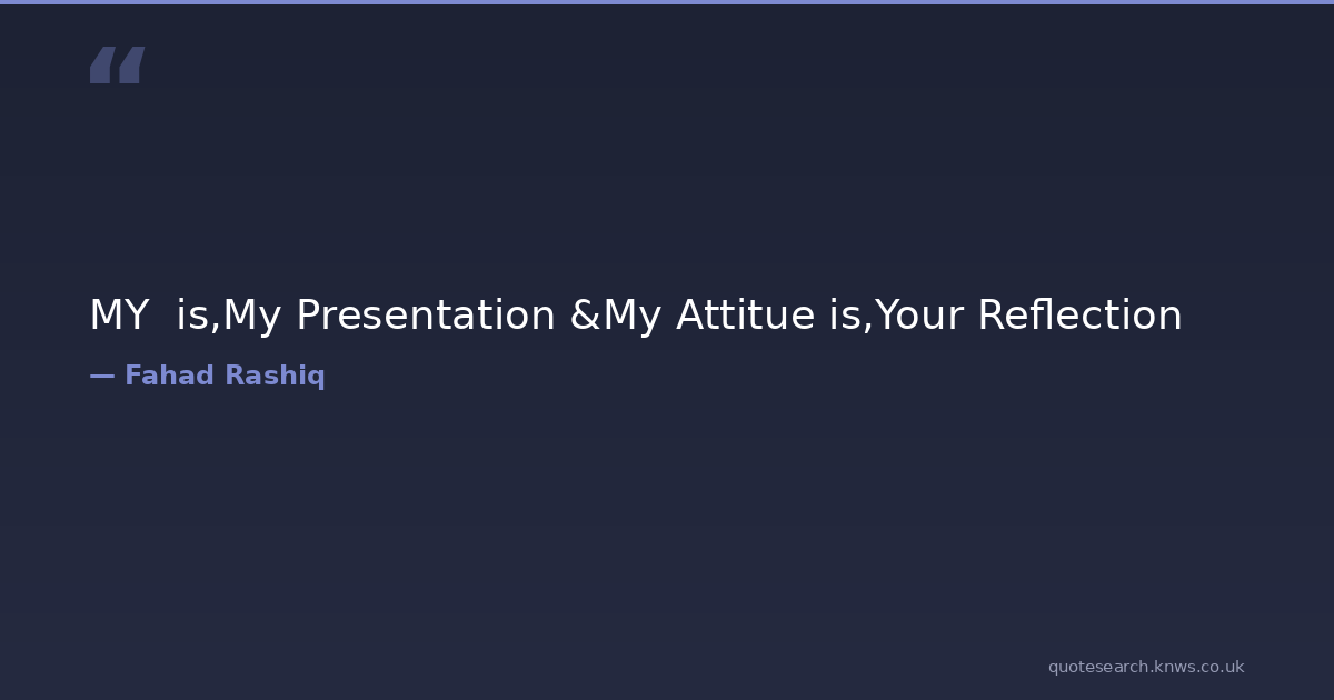 MY is,My Presentation &My Attitue is,Your Reflection attitude attitude-quotes fahad-rashiq my-attitu-e my-presentation my-style presentation reflection reflectionofpassion style your-reflection Download Image Share on X Share on Facebook Copy Link
