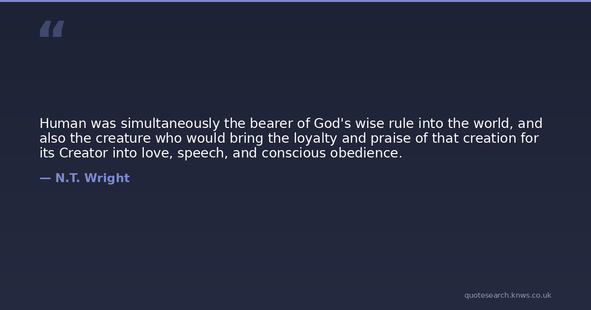 Human was simultaneously the bearer of God's wise rule into the world, and also the creature who would bring the loyalty and praise of that creation for its Creator into love, speech, and conscious obedience.