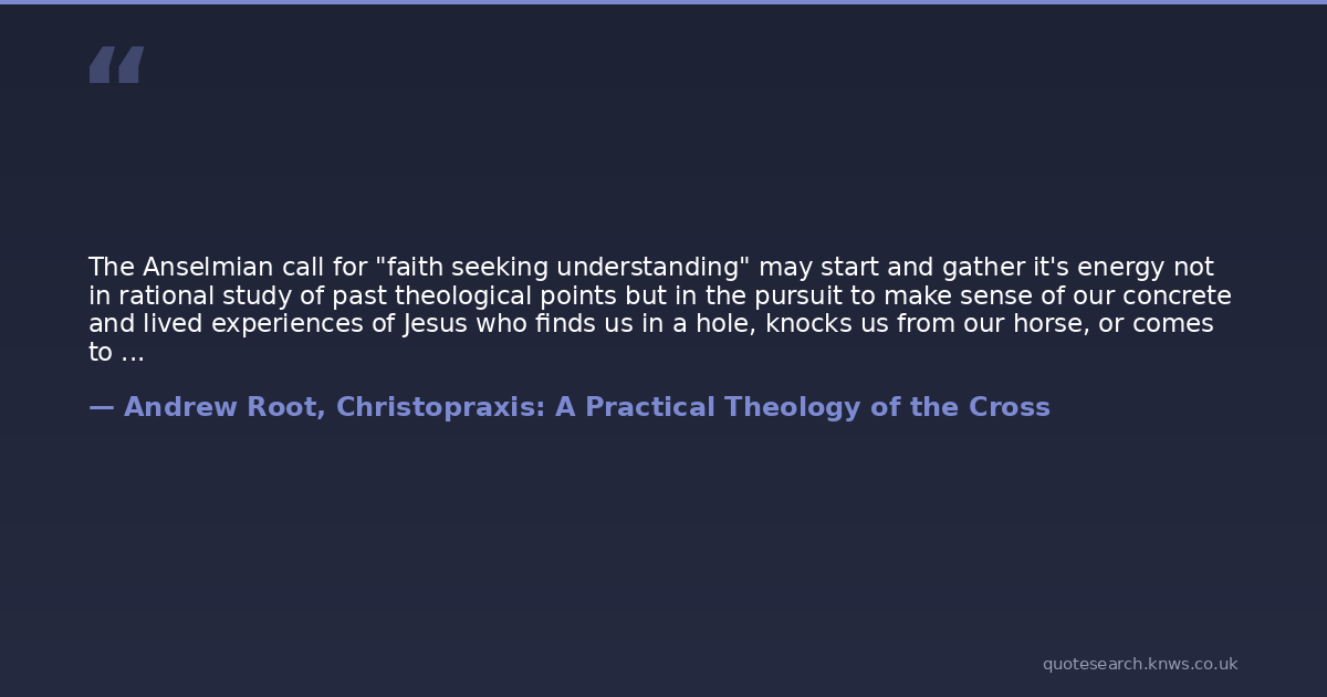 The Anselmian call for "faith seeking understanding" may start and gather it's energy not in rational study of past theological points but in the pursuit to make sense of our concrete and lived experiences of Jesus who finds us in a hole, knocks us from our horse, or comes to our daughter in her sleep.
