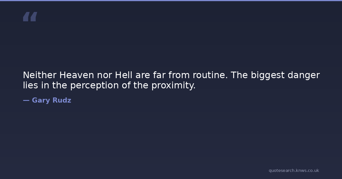 Neither Heaven nor Hell are far from routine. The biggest danger lies in the perception of the proximity.
