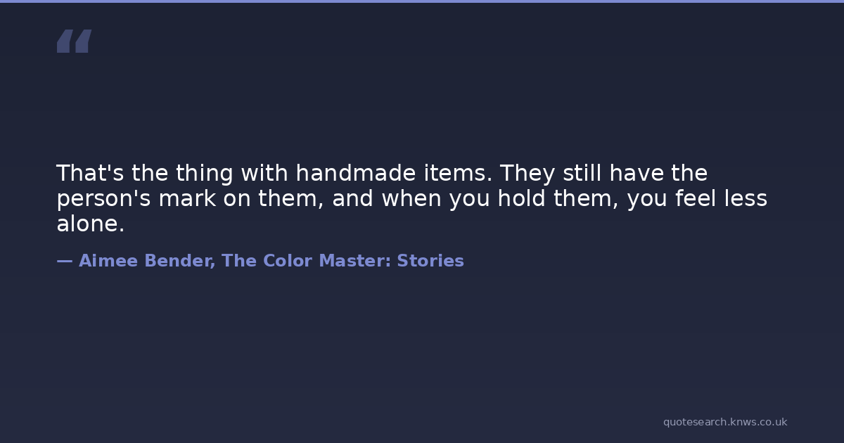 That's the thing with handmade items. They still have the person's mark on them, and when you hold them, you feel less alone.