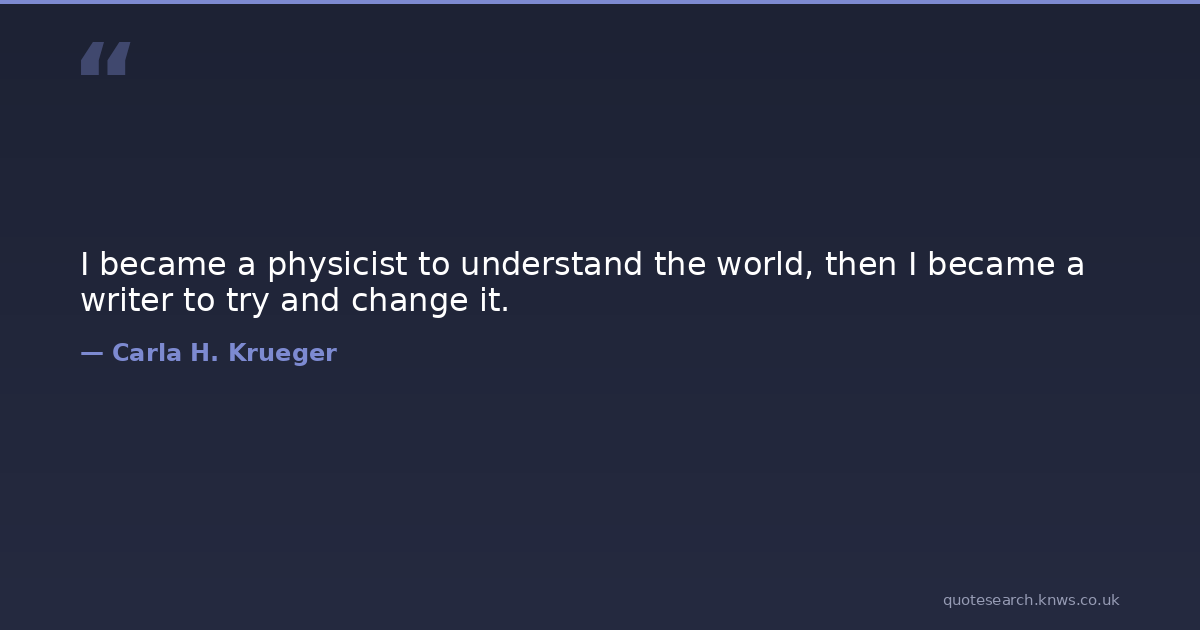 I became a physicist to understand the world, then I became a writer to try and change it.