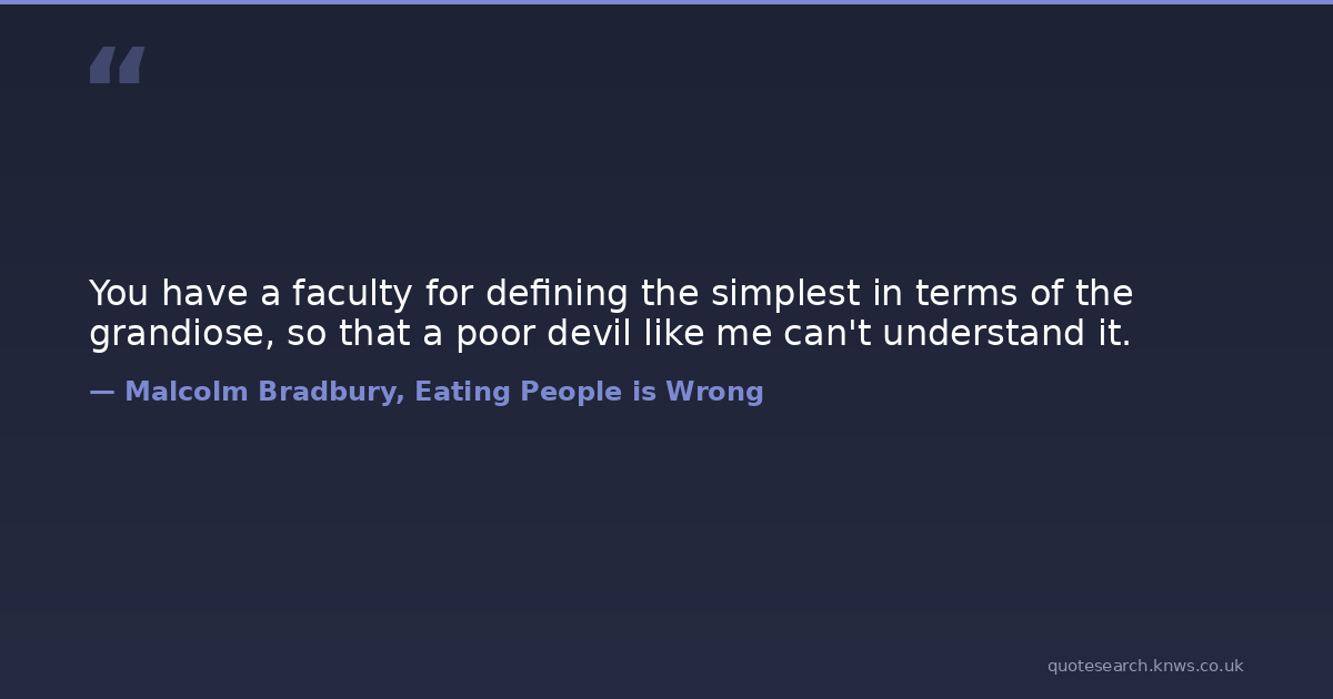 You have a faculty for defining the simplest in terms of the grandiose, so that a poor devil like me can't understand it.