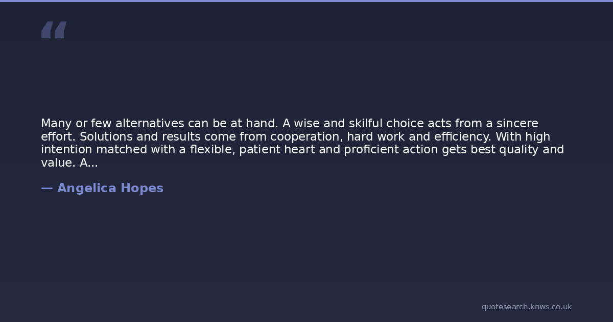 Many or few alternatives can be at hand. A wise and skilful choice acts from a sincere effort. Solutions and results come from cooperation, hard work and efficiency. With high intention matched with a flexible, patient heart and proficient action gets best quality and value. As for the restless grumbles raving from unconsciousness of complexity of matters, best be brushed off ducking out wisely from discourtesies.