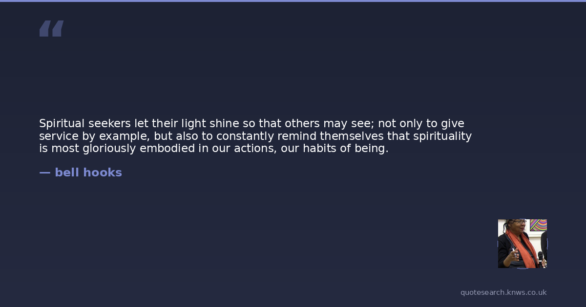 Spiritual seekers let their light shine so that others may see; not only to give service by example, but also to constantly remind themselves that spirituality is most gloriously embodied in our actions, our habits of being.