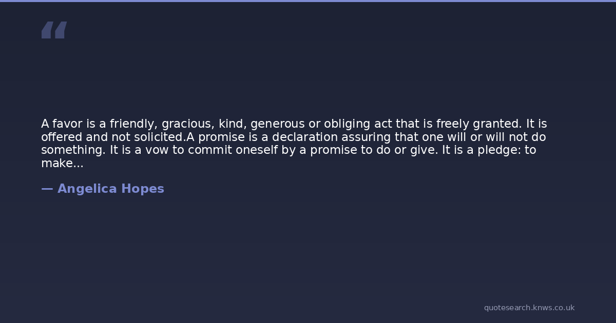 A favor is a friendly, gracious, kind, generous or obliging act that is freely granted. It is offered and not solicited.A promise is a declaration assuring that one will or will not do something. It is a vow to commit oneself by a promise to do or give. It is a pledge: to make a declaration assuring that something will or will not be done.When you assume and mistook favor for a promise, then misunderstanding comes in. Learn to distinguish clearly between a favor and a promise to avoid false expectations, blind hopes and deep disappointments.Never demand on favours given.Never impose on mistaken promises.Never put under pressure the people who have given you favor.Have a humble and grateful heart for both favors and promises fulfilled.