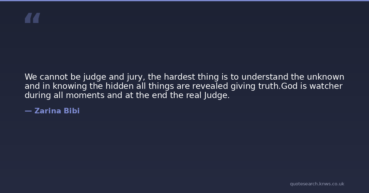 We cannot be judge and jury, the hardest thing is to understand the unknown and in knowing the hidden all things are revealed giving truth.God is watcher during all moments and at the end the real Judge.