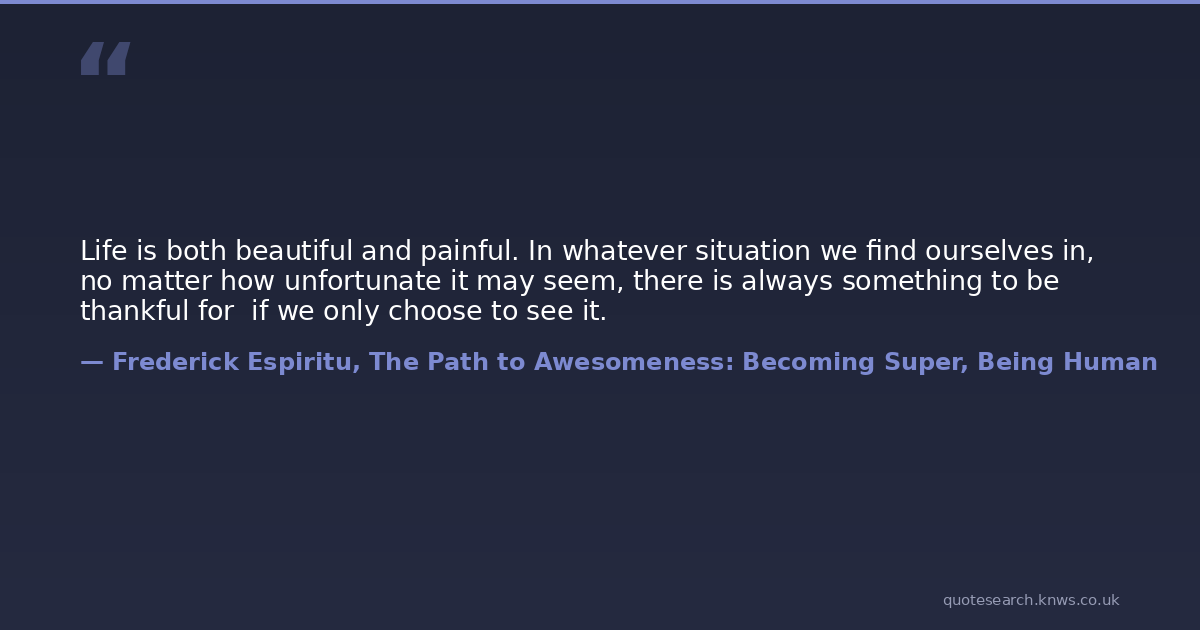 Life is both beautiful and painful. In whatever situation we find ourselves in, no matter how unfortunate it may seem, there is always something to be thankful for if we only choose to see it.