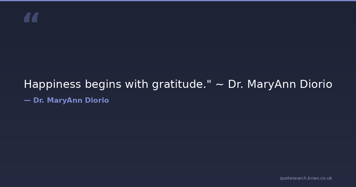 Happiness begins with gratitude." ~ Dr. MaryAnn Diorio gratitude happiness thanksgiving Download Image Share on X Share on Facebook Copy Link