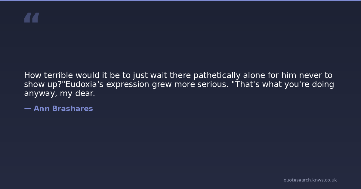 How terrible would it be to just wait there pathetically alone for him never to show up?"Eudoxia's expression grew more serious. "That's what you're doing anyway, my dear.
