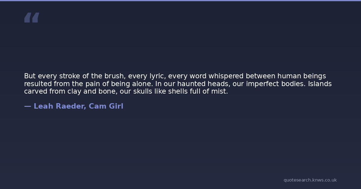 But every stroke of the brush, every lyric, every word whispered between human beings resulted from the pain of being alone. In our haunted heads, our imperfect bodies. Islands carved from clay and bone, our skulls like shells full of mist.