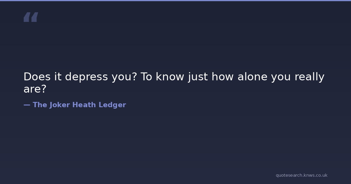 Does it depress you? To know just how alone you really are? alone depress heath-ledger the-dark-knight the-joker Download Image Share on X Share on Facebook Copy Link
