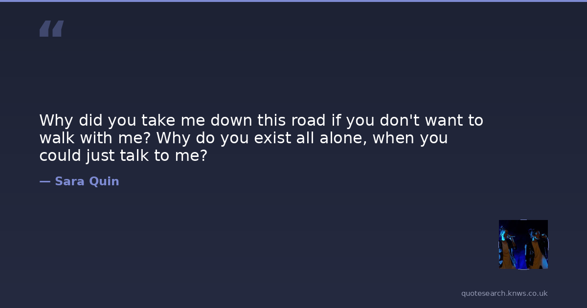 Why did you take me down this road if you don't want to walk with me? Why do you exist all alone, when you could just talk to me?
