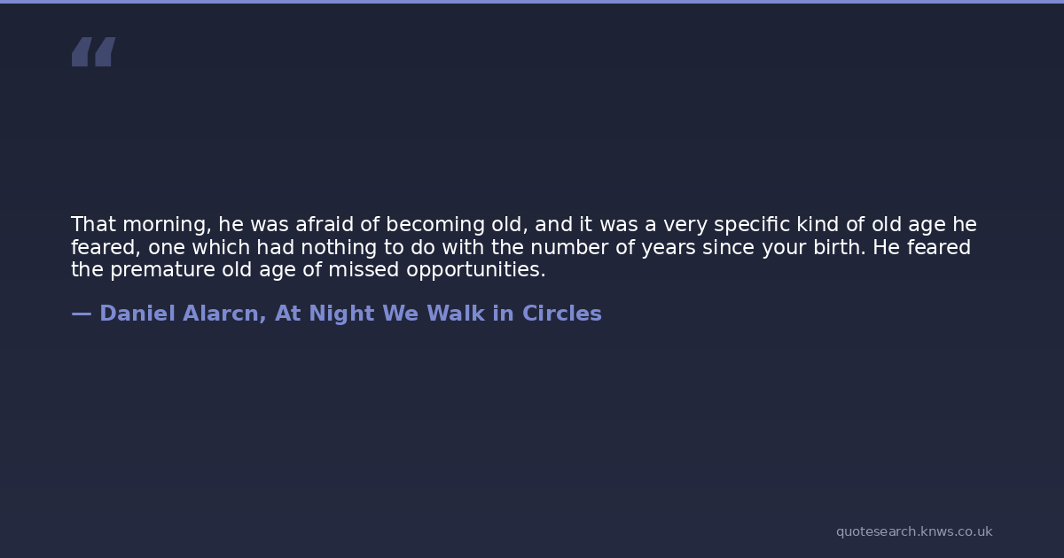 That morning, he was afraid of becoming old, and it was a very specific kind of old age he feared, one which had nothing to do with the number of years since your birth. He feared the premature old age of missed opportunities.