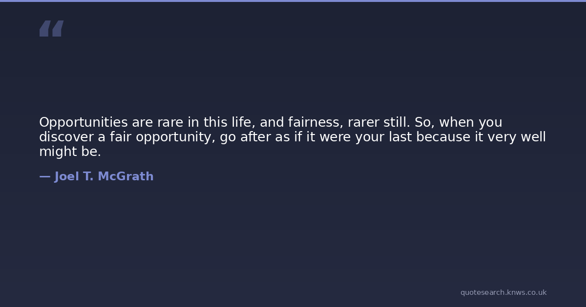 Opportunities are rare in this life, and fairness, rarer still. So, when you discover a fair opportunity, go after as if it were your last because it very well might be.