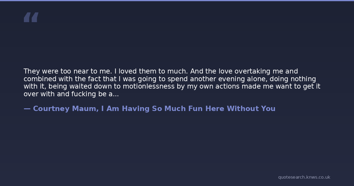They were too near to me. I loved them to much. And the love overtaking me and combined with the fact that I was going to spend another evening alone, doing nothing with it, being waited down to motionlessness by my own actions made me want to get it over with and fucking be alone.