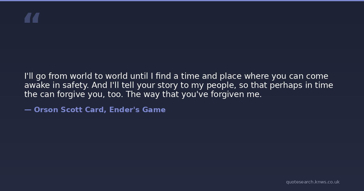 I'll go from world to world until I find a time and place where you can come awake in safety. And I'll tell your story to my people, so that perhaps in time the can forgive you, too. The way that you've forgiven me.