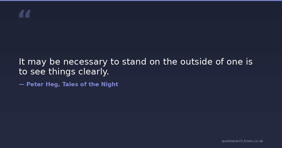 It may be necessary to stand on the outside of one is to see things clearly. clarity detachment distance insight outsiders understanding Download Image Share on X Share on Facebook Copy Link