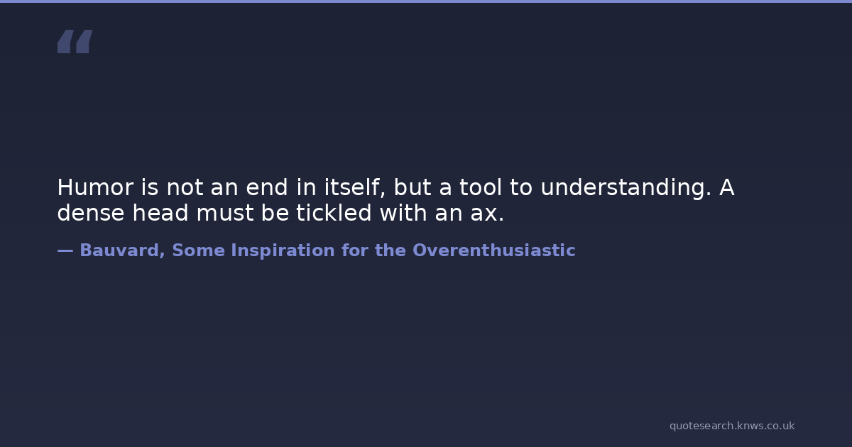 Humor is not an end in itself, but a tool to understanding. A dense head must be tickled with an ax.