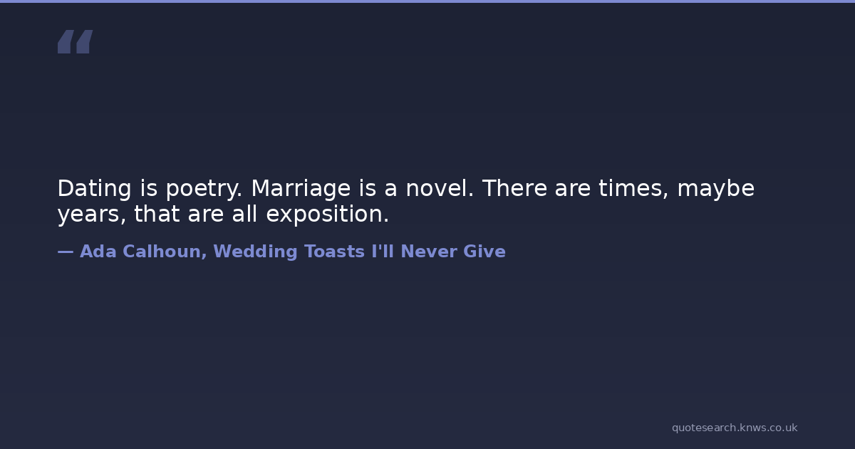 Dating is poetry. Marriage is a novel. There are times, maybe years, that are all exposition.