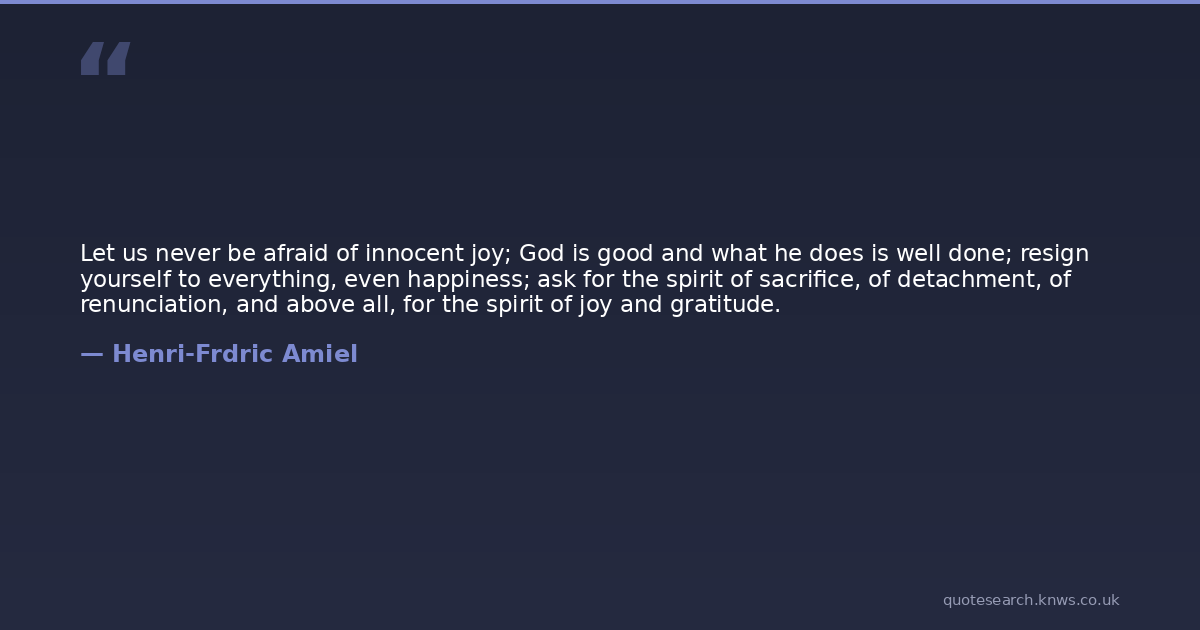 Let us never be afraid of innocent joy; God is good and what he does is well done; resign yourself to everything, even happiness; ask for the spirit of sacrifice, of detachment, of renunciation, and above all, for the spirit of joy and gratitude.