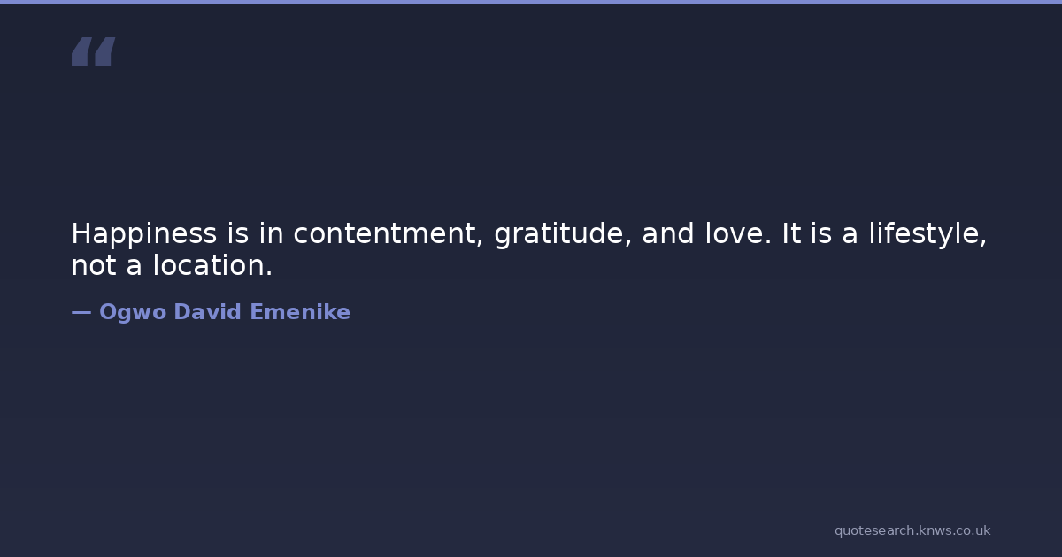 Happiness is in contentment, gratitude, and love. It is a lifestyle, not a location.
