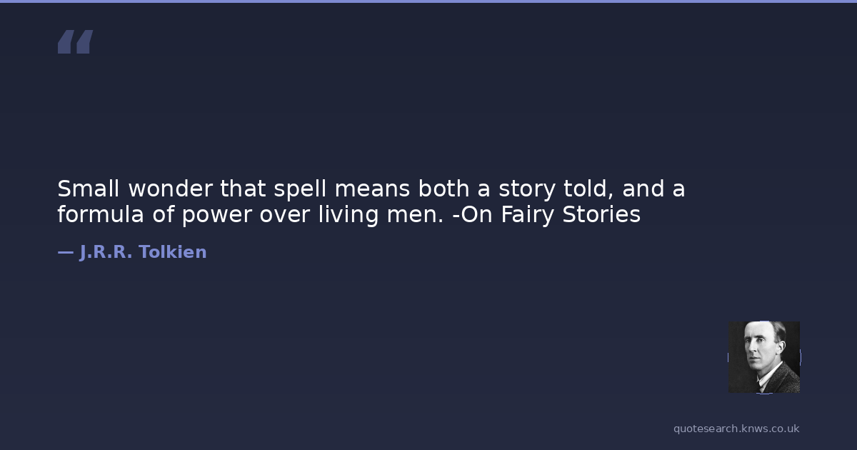 Small wonder that spell means both a story told, and a formula of power over living men. -On Fairy Stories
